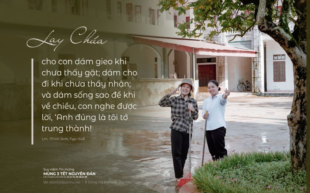 Lạy Chúa, bước vào năm mới, xin dạy con biết trao; con dễ lo lắng, xin dạy con biết tín thác; con ước mong nhiều điều, xin giữ lòng con luôn khát khao Chúa!