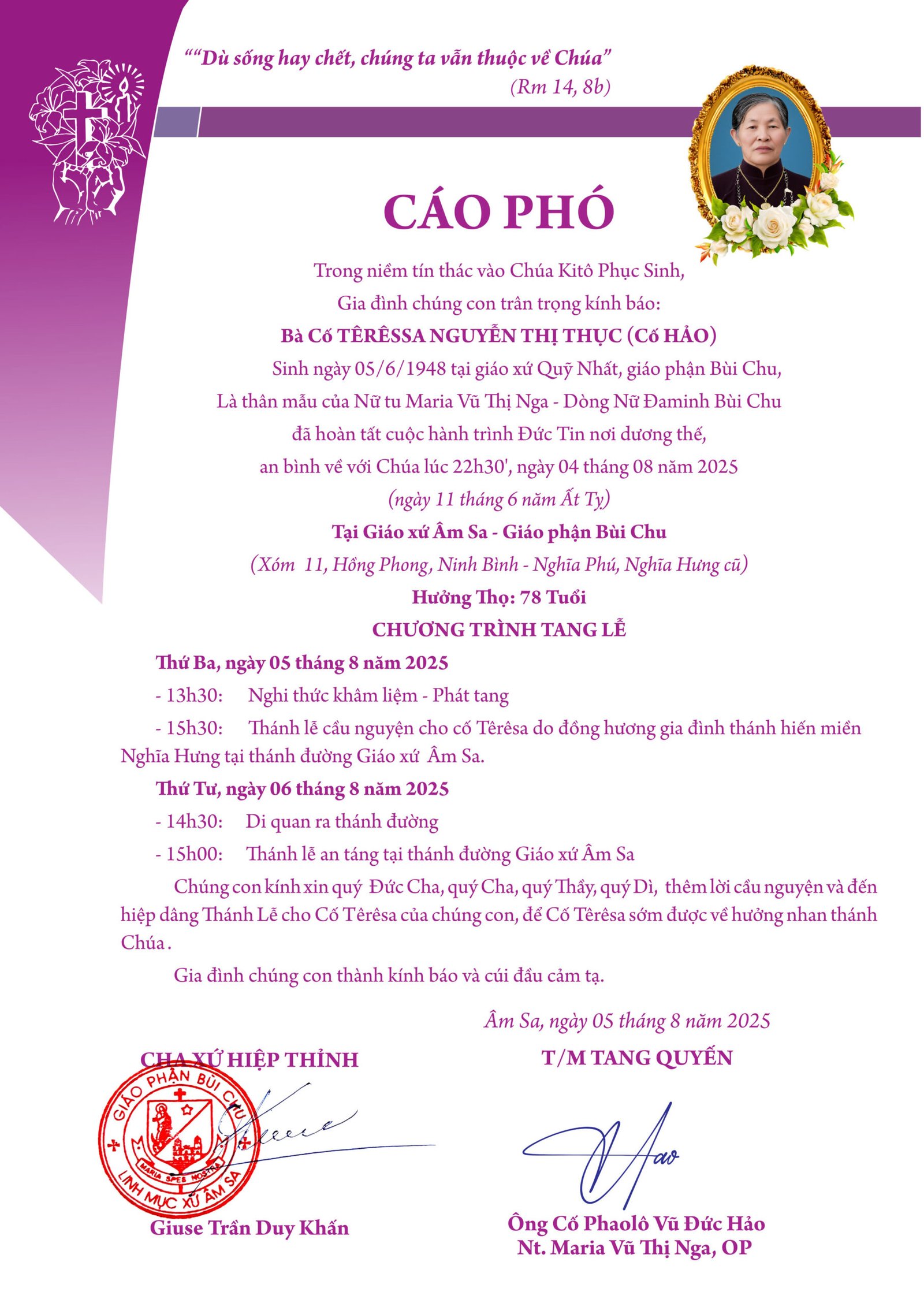 Cáo phó Bà Cố Têrêsa Nguyễn Thị Thục (Cố Hảo)