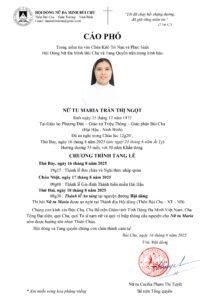 Cáo phó Nữ tu Maria Trần Thị Ngọt