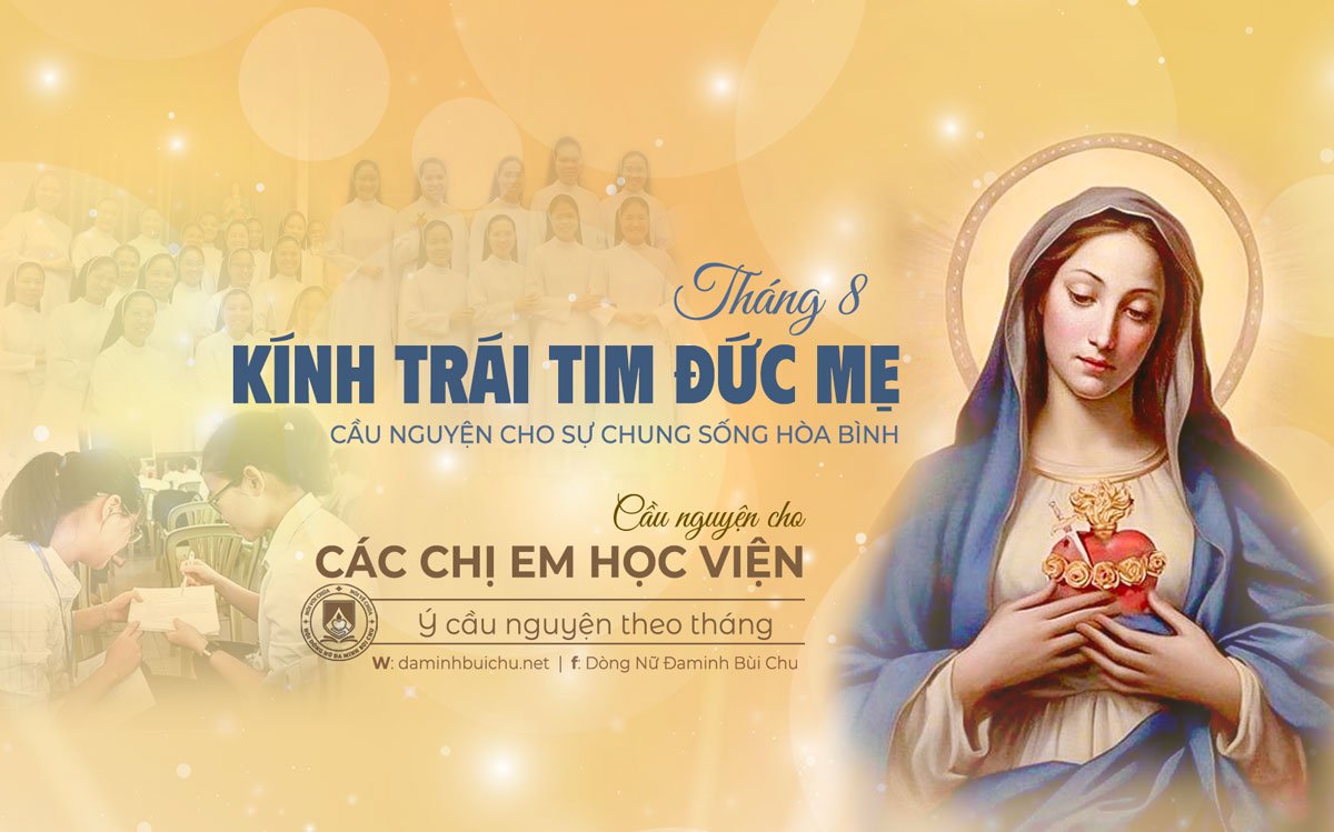 Trong tháng kính Trái Tim Đức Mẹ, chúng con – các chị em Học viện – xin được nép mình bên Mẹ, học nơi Mẹ sự chiêm niệm âm thầm, lòng mến trung thành, và trái tim rộng mở cho sứ mạng.