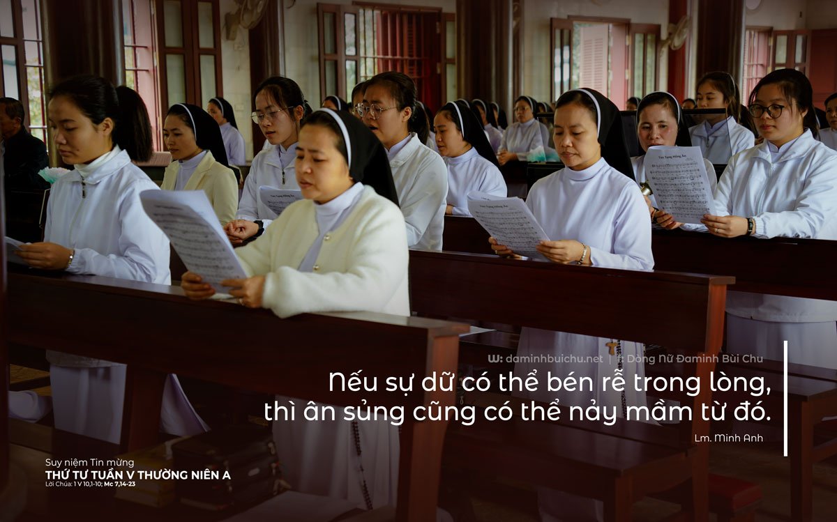 Nhưng Tin Mừng không chỉ cảnh báo mà còn mở ra hy vọng. Chúa Giêsu đã từng nói, “Nước Thiên Chúa ở trong anh em!”. Nếu sự dữ có thể bén rễ trong lòng, thì ân sủng cũng có thể nảy mầm từ đó. “Nếu Nước Trời ở trong lòng người, thì chiến tuyến không chạy qua quốc gia này hay tổ chức kia, mà cắt ngang trái tim – nơi mỗi người chọn sống cho mình hay sống cho tình yêu!” – Jean Vanier. Vấn đề không phải tôi đang ở hoàn cảnh nào, nhưng tôi đang ấp ủ điều gì trong lòng?