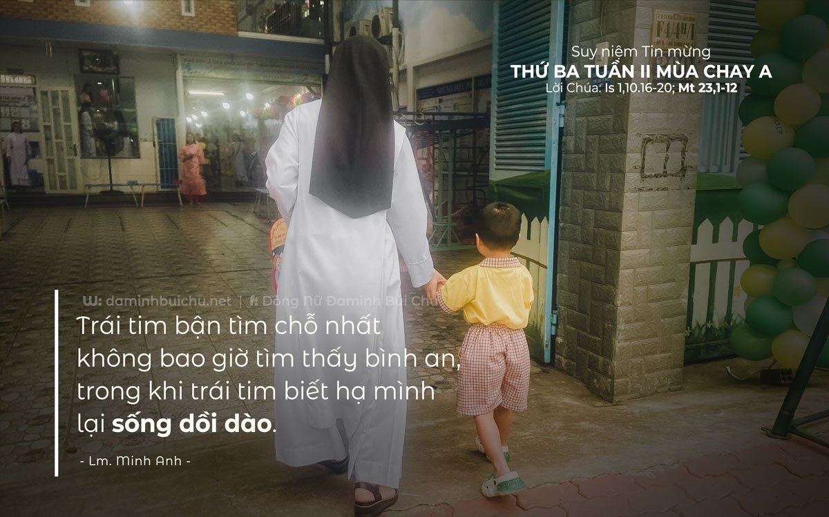 Mùa Chay, mùa “rửa cho sạch, tẩy cho hết, và vứt bỏ tội ác”; mùa “tập làm điều thiện, tìm kiếm lẽ công bình” – bài đọc một. Vì nếu chúng ta chỉ chăm chú hình thức, tất cả chỉ là rỗng không. Bởi lẽ, chỉ “Ai sống đời hoàn hảo, Ta cho hưởng ơn cứu độ Chúa Trời” – Thánh Vịnh đáp ca – không phải hoàn hảo nghi thức, mà hoàn hảo trong lòng; nói cách khác, hạ mình tôn trọng Chúa Kitô trong các “nhà tạm di động” của Ngài thật sự. “Không có khiêm nhường, không thể có nhân bản!” – John Buchan.