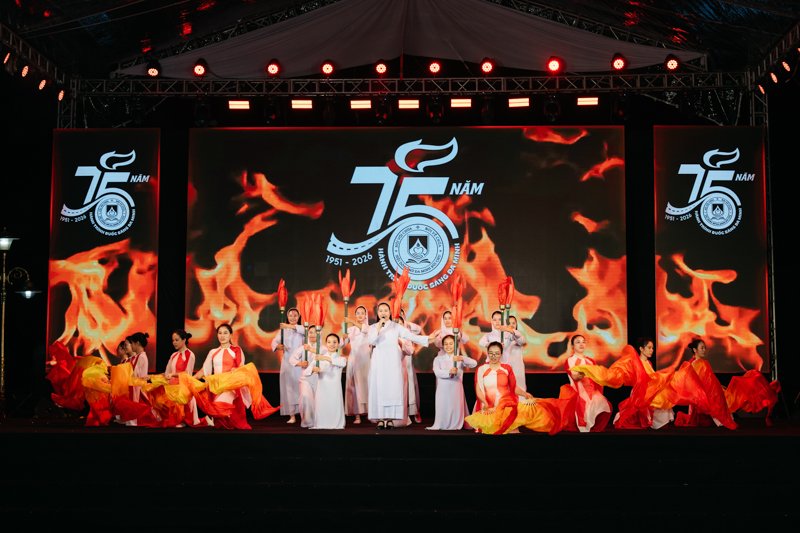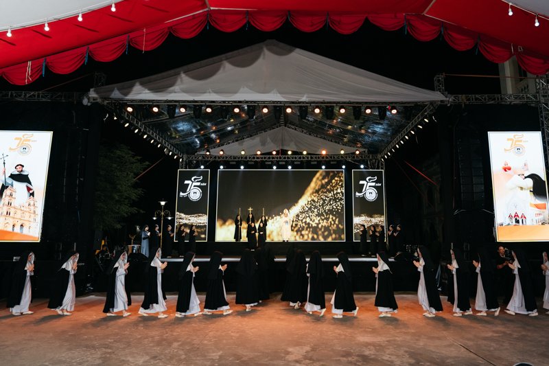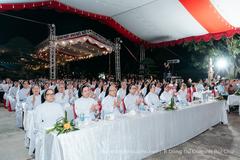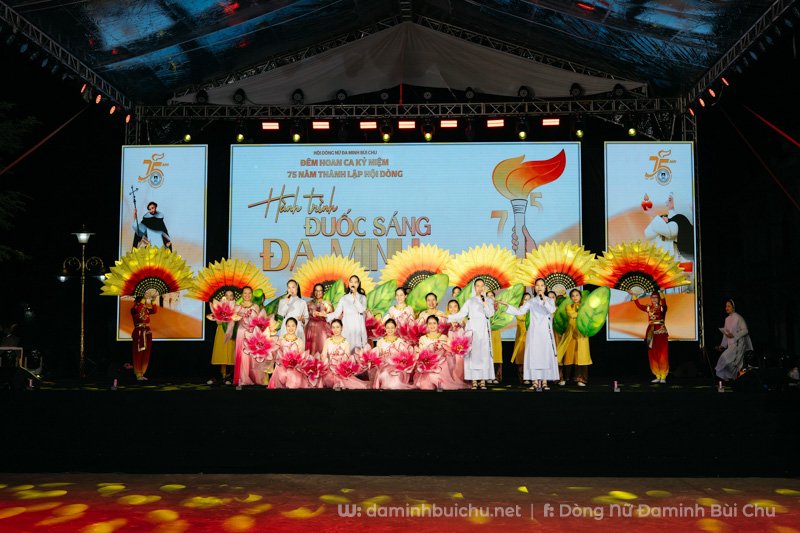 Tối cùng ngày, vào lúc 7g15 phút, đã diễn ra chương trình hoan ca diễn nguyện kỷ niệm 75 năm Hội dòng được khai sinh nơi mảnh đất hình chữ S này sau khi được Đức Cha cố Phêrô Maria Phạm Ngọc Chi ban Sắc thành lập Dòng. Với chủ đề 75 năm Hành Trình Đuốc Sáng Đa Minh, được chia làm 3 phần cụ thể, chương trình đã dẫn dắt người xem đi qua những chặng đường đầy dấu ấn về sự trung tín của quý Bà, quý Mẹ, quý Dì ở quá khứ đến sự dấn thân và hăng say trong đời sống cũng như sứ vụ của quý chị em ở hiện tại, đồng thời mở ra một tương lai đầy hy vọng trong sự dẫn dắt của Thiên Chúa. Chương trình đêm hoan ca khép lại, nhưng có lẽ, dư âm về một hành trình dâng hiến được cháy lên rực rỡ trong tim mỗi chị em Đa Minh Bùi Chu sẽ còn đọng lại trong tâm hồn mỗi người.