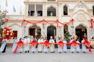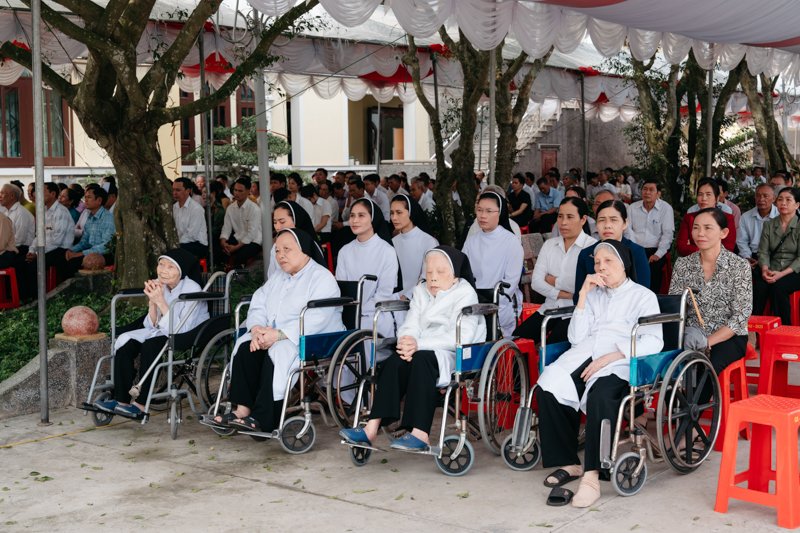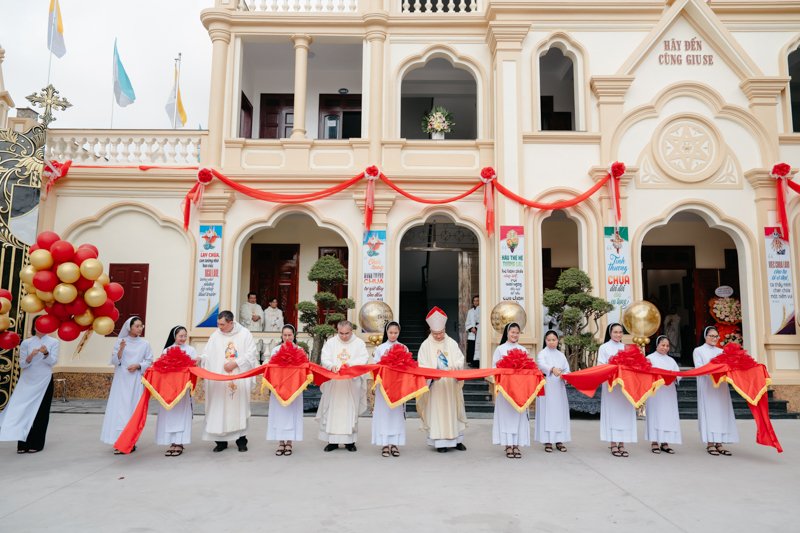 Trước đó, vào lúc 9g15 phút, tại khuôn viên của Hội dòng, Đức Cha Tôma Vũ Đình Hiệu – Giám mục Giáo phận Bùi Chu đã chủ sự nghi thức cắt băng Khánh thành và Làm phép nhà mới của Hội dòng (Nhà Khách và Nhà Thuốc Đông Y). Đây tiếp tục là một minh chứng rõ ràng về tình yêu quan phòng của Thiên Chúa trong từng ngày sống và nếp sinh hoạt của Hội dòng.