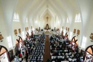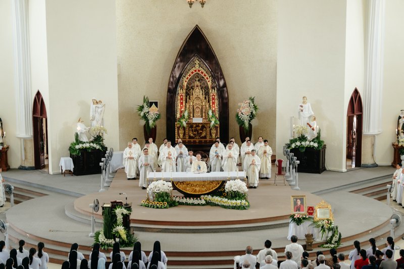 Ngay sau đó, Đức Cha đã chủ tế Thánh lễ với sự hiện diện của hơn 160 Linh mục trong và ngoài Giáo phận, cùng đông đủ quý Bề trên các Hội dòng-Tu hội-Hiệp hội, quý Tu sĩ nam nữ cùng quý Ân-thân nhân và quý khách.