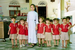 Ngày khai giảng 05/9 trở thành lời nhắc nhớ: mỗi em nhỏ là một món quà quý giá, là hạt mầm cần được nâng niu để lớn lên trong tình thương và ân sủng. Bởi vậy, từng bài học, từng bữa ăn, từng giờ chơi đều mang trong mình một giá trị giáo dục âm thầm mà bền vững. Chính trong những điều nhỏ bé ấy, tình thương được gieo xuống và mai này sẽ nảy nở thành hoa trái của sự trưởng thành, trách nhiệm và nhân bản. Xin cho năm học 2025 – 2026 sẽ là một mùa học tập và trưởng thành, nơi mỗi em nhỏ được lớn lên trong tri thức, trong nhân cách và trong tình yêu thương của Thiên Chúa.