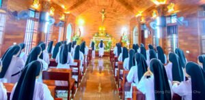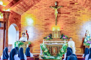 Nếu như nơi chị em có thể tìm thấy niềm vui và sự sẻ chia, thì nơi Thánh Thể lại là nguồn sống của người tận hiến. Trước Thánh lễ, chị em dành 30 phút Chầu Thánh Thể chung. Trong thinh lặng trước Thánh Thể, mỗi người cảm nghiệm sự gắn bó mật thiết với Chúa Giêsu, được tháp nhập vào đại dương tình yêu của Người. Chính tình yêu ấy mời gọi chị em sống quảng đại, tha thứ, và dấn thân nhiều hơn cho sứ vụ mà Hội dòng trao phó.