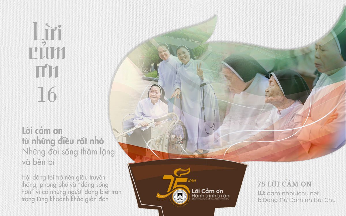 Nhưng Dì đã không biết rằng, người cần nói lời cảm ơn lại chính là tôi. Tôi mang ơn Dì – người đã lặng lẽ dâng hiến cả cuộc đời mình, đã hy sinh cách lặng thầm để tôi và các chị em hôm nay vẫn được tiếp tục sống, tiếp tục tu và bước đi trong “Ngôi nhà Đa Minh Bùi Chu” với 75 năm tuổi đời này. Chính cuộc đời âm thầm của Dì đã góp phần xây nền cho thế hệ trẻ chúng tôi hôm nay và mở ra một tương lai đầy hy vọng cho Hội dòng.