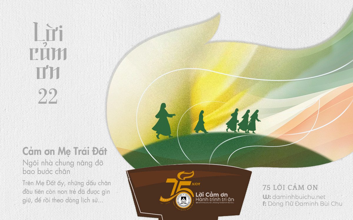 Trong tâm tình mừng kỷ niệm 75 năm thành lập Hội Dòng, con xin cảm ơn Mẹ Trái Đất vì đã âm thầm đồng hành qua bao thế hệ. Lời cảm ơn này cũng là một lời cam kết: ước mong rằng, khi sống trung thành với linh đạo Đa Minh, chúng con biết sống trách nhiệm hơn, để mỗi bước chân sứ vụ không làm tổn thương nhưng góp phần hàn gắn, tái sinh ngôi nhà chung mà Thiên Chúa đã trao phó cho chúng con.
