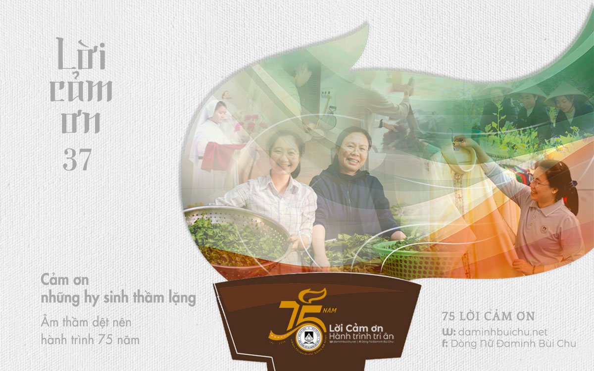 Nhìn lại tất cả những công việc âm thầm ấy, tôi hiểu rằng hành trình 75 năm của Hội dòng không chỉ được xây dựng bằng những biến cố lớn hay những chặng đường được ghi nhớ trong lịch sử, mà còn được đan dệt từ vô số việc nhỏ, rất đời thường, được lặp lại mỗi ngày với sự trung tín và yêu mến. Những công việc đó có khi rõ ràng, có khi khuất phía sau cánh cửa hay bụi cây, lại có khi lặng lẽ đến mức chính người làm cũng không nghĩ rằng mình đang góp phần làm nên lịch sử. Và tôi biết, những điều được kể ra đây chắc chắn vẫn chưa đủ, vì còn đó rất nhiều chị em, ở những vị trí, những cộng đoàn khác, đang âm thầm sống trọn bổn phận của mình mỗi ngày, v.v. Chính những hy sinh lặng lẽ ấy đã tạo nên một nền tảng vững chắc, để các thế hệ chị em có thể an tâm sống đời thánh hiến và tiếp nối sứ mạng hôm nay.