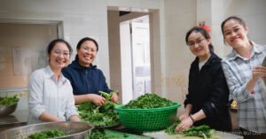 Nơi khu vườn nhỏ hay khu vực chăn nuôi của cộng đoàn, có những chị em đã quen với nắng sớm mưa chiều, với đất cát bám đầy tay áo, lặng lẽ làm đất, gieo trồng, chăm chút từng luống rau, từng gốc cây, từng con vịt, con gà, con ngan… không chỉ bằng đôi tay cần mẫn mà bằng cả tấm lòng yêu mến. Chính từ những nhọc nhằn rất đỗi bình dị ấy đã tạo ra những bó rau xanh, những củ-quả tươi ngon, hay những món đủ “protein” trên bàn ăn của cộng đoàn, giúp chị em an tâm về nguồn thực phẩm sạch, lành và an toàn. Nhờ đó sức khỏe và đời sống cộng đoàn được nuôi dưỡng không những bởi của ăn vật chất mà bằng sự bình an và tin tưởng.