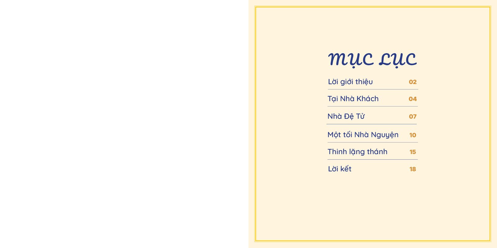 Những khung cảnh rất quen thuộc: Nhà Khách, Nhà Đệ tử, Nhà Nguyện, và những giờ thinh lặng… – những điều giản dị nhưng đã trở thành những dấu ấn không thể xoá nhoà đối với tác giả. Ước mong câu chuyện nhỏ này cũng sẽ chạm đến một trái tim nào đó – như tác giả đã từng được chạm đến.
