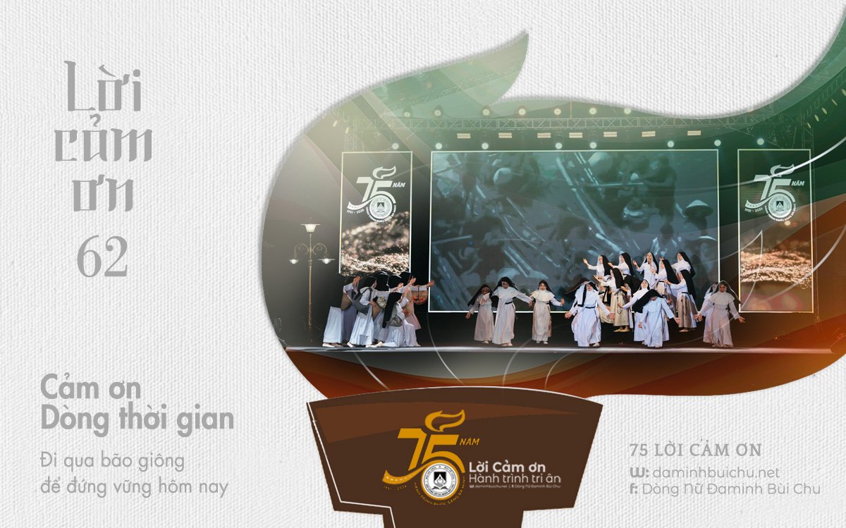Chương trình đêm hoan ca diễn nguyện và Thánh lễ kỷ niệm 75 năm thành lập rồi cũng kết thúc. Nhưng bầu khí và dư âm vẫn còn nguyên vẹn trong tôi. Những ngày sau đó – một mình tôi – trong không gian đêm tối tĩnh mịch, ngẫm suy lại mọi sự… tôi thấy sự đứng vững của Hội dòng và thấy sự hiện diện của mình ở nơi đây thật kỳ diệu. Tôi đang đứng trước ngưỡng cửa của quá khứ, từng mốc thời điểm tương ứng với từng biến cố đang diễn ra sống động như vừa mới xảy ra hôm nào. Mọi hoạt động xoay vần như bức tranh đủ gam màu sáng- tối và tôi chỉ biết lặng thinh để cảm thấu. Tôi tự hỏi, bởi đâu chân tôi đang được đứng vững trên nền đá như ngày hôm nay? Sức mạnh nội tại nào đã giúp những người con gái vóc dáng nhỏ bé, chân yếu tay mềm đỡ lấy sứ mạng của Hội dòng còn non trẻ yếu ớt dễ bị lung lay trước phong ba bão táp của thời cuộc khi xưa? Có lẽ, lòng tin tưởng phó thác vào Đấng Tối Cao trong mỗi giờ kinh nguyện, mỗi hy sinh dẫu nhỏ bé của những người nữ tu Đa Minh Bùi Chu đã được Ngài thương đoái.
