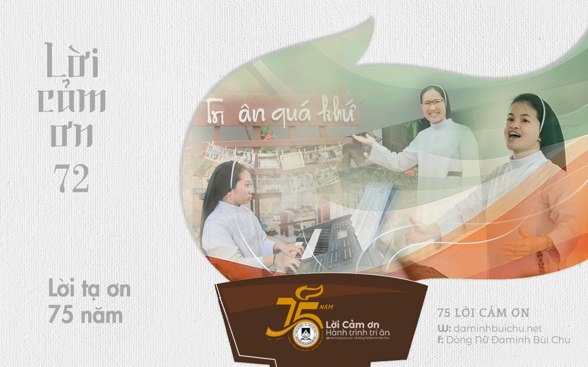Đây lời kinh nguyện cầu, đây ý nhạc, vần thơ, đây nghiền ngẫm suy tư, đây câu ca, chuyện kể… Đoàn con bốn phương mang về, góp thành khúc ca tạ ơn, đoàn con bốn phương hiệp lòng cất cao lời tán tụng hồng ân! Tạ ơn Thiên Chúa thắp sáng Hội dòng chúng con, 75 năm qua – hành trình gian khó trập trùng…