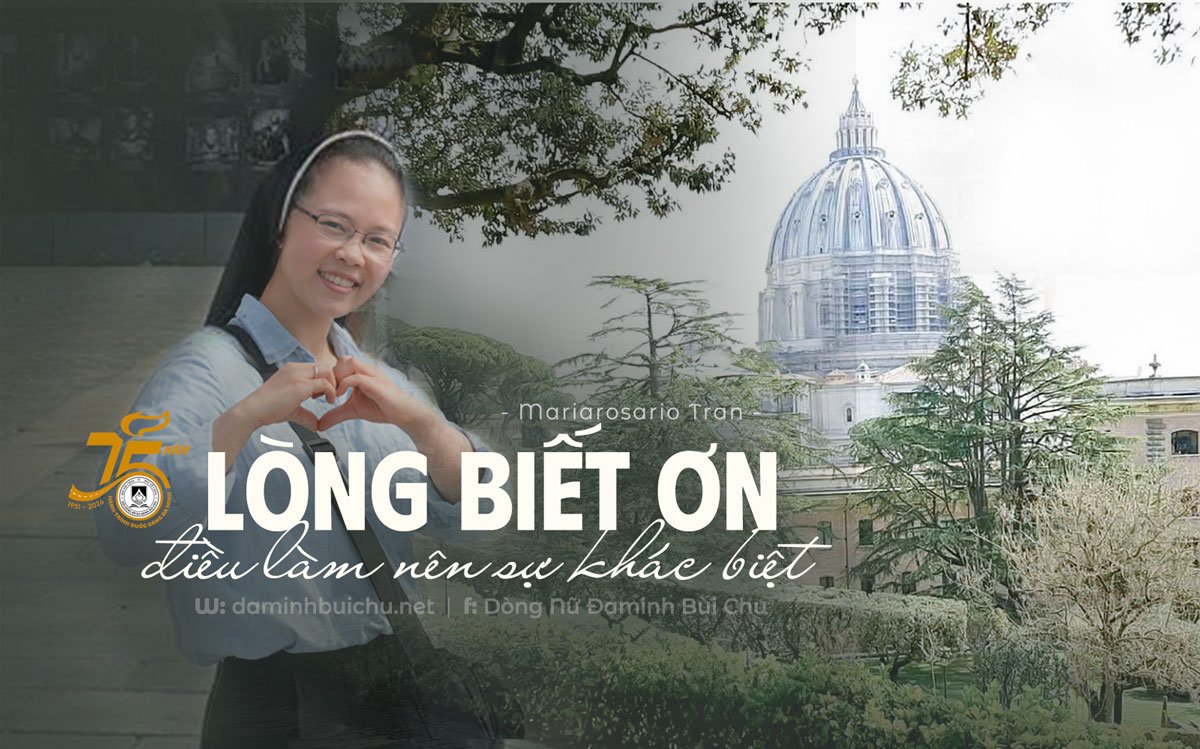“Lòng biết ơn thật sự làm nên sự khác biệt”, giúp tôi nhận ra rằng ơn gọi không chỉ là “được hiến dâng”, mà còn là “được đón nhận” – đón nhận tình yêu, sự nâng đỡ, và những ân huệ tinh tế Thiên Chúa gửi đến qua từng chị em trong Hội dòng. Tôi ước mong rằng, cuộc đời tôi, trong từng việc nhỏ bé thường ngày, sẽ luôn là một bài ca tạ ơn – vang lên giữa lòng Giáo Hội, như một dấu chỉ khiêm tốn của tình yêu và lòng biết ơn vô biên mà tôi dành cho Hội dòng nhân kỷ niệm 75 hiện diện.