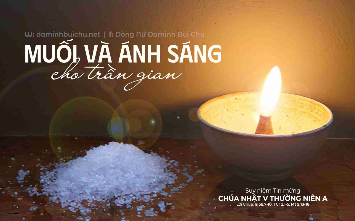 Lời của Chúa Giêsu trong Tin Mừng hôm nay một lần nữa được vang lên cho chúng ta là những môn đệ của Chúa. Chúng ta có một sứ mạng để thi hành, đặc biệt trong thế giới hôm nay, một thế giới có quá nhiều biến động và bất an. Thật vậy, thế giới này đang cần lắm những hạt muối dù là nhỏ bé, những tia sáng dù là ít ỏi nhưng được thắp lên trong hy vọng, trong tin yêu nơi những tâm hồn đang lạnh giá, nơi thế giới đang khô cằn, tuyệt vọng. Một lời hỏi thăm chân thành, một cái bắt tay hòa giải, một sự đồng cảm với nỗi đau của người khác, hay đơn giản chỉ là một lời khích lệ, an ủi, một hy sinh nhỏ mỗi ngày dâng Chúa… Đó chính là những hạt muối và ánh sáng mà chúng ta có thể “ướp mặn” và thắp lên trong từng ngày sống. Chúng ta được mời gọi hãy là người bắt đầu cho điều tốt đẹp ấy được nảy nở, được trổ sinh và được lan tỏa cho thế giới này.