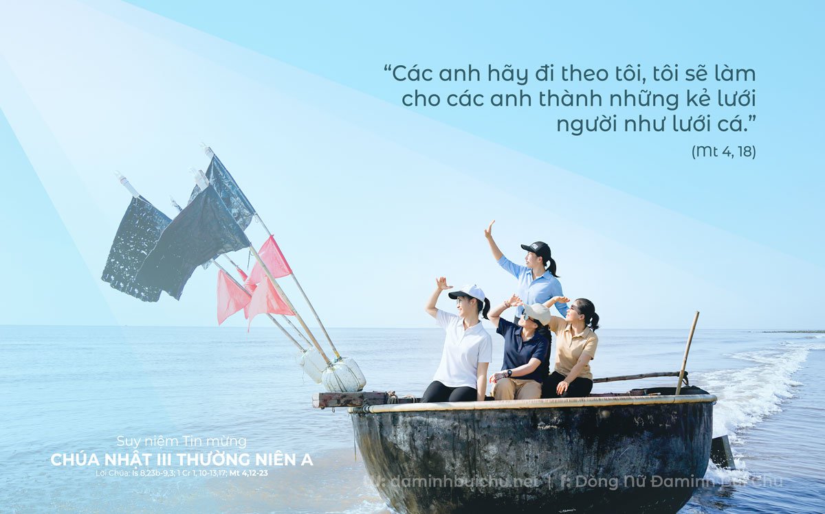 Ngay sau lời rao giảng ấy, thánh Mátthêu kể lại việc Đức Giêsu kêu gọi những môn đệ đầu tiên. Không phải trong đền thờ hay hội đường, nhưng giữa đời sống rất thường nhật của những người chài lưới. Khi các ông đang bận rộn mưu sinh, Đức Giêsu đến và gọi đích danh từng người: “Các anh hãy theo tôi, tôi sẽ làm cho các anh thành những kẻ lưới người như lưới cá” (Mt 4,19).
