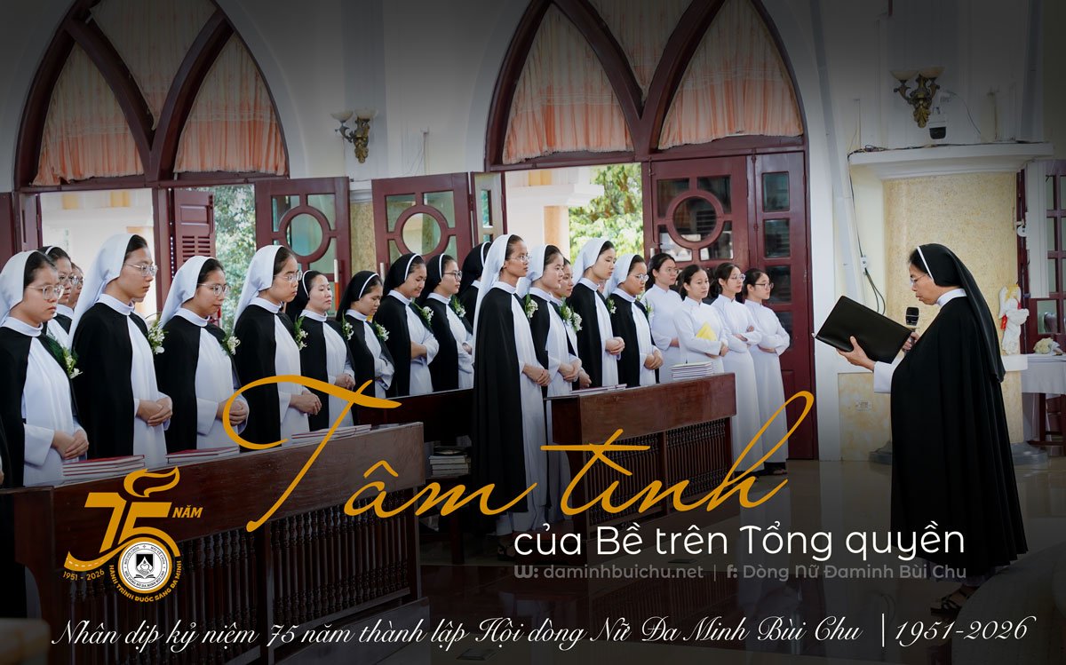 Trong tâm tình tạ ơn sâu xa, tôi hiệp thông cùng toàn thể chị em trong Hội dòng để dâng lên Thiên Chúa lời chúc tụng – ngợi khen, vì chính Người đã không ngừng dẫn dắt, gìn giữ và làm cho Hội dòng Nữ Đa Minh Bùi Chu tồn tại và triển nở suốt 75 năm hồng ân. Dấu mốc ân sủng này mời gọi mỗi chị em chúng ta dừng lại trong thinh lặng nội tâm, để chiêm ngắm và đọc lại hành trình đã qua dưới ánh sáng đức tin, với lòng tri ân sâu thẳm; đồng thời, can đảm hướng về phía trước, phó thác trọn vẹn tương lai cho sự quan phòng yêu thương của Thiên Chúa.