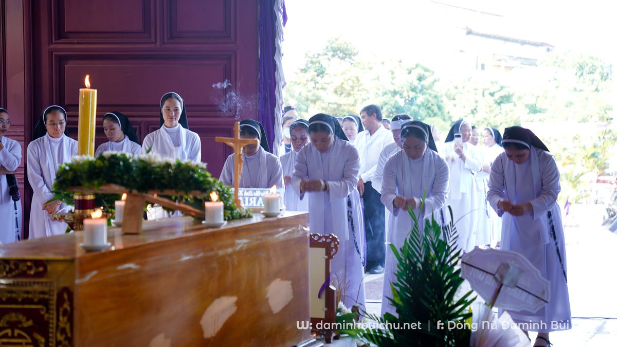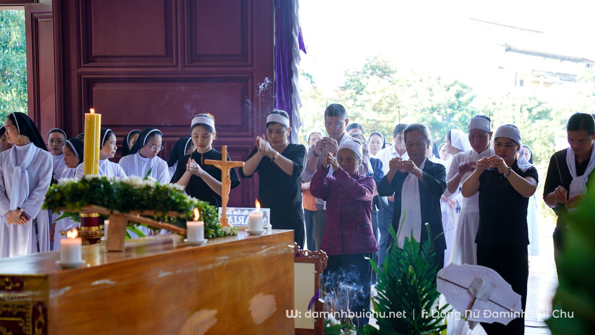 Trước khi bước vào Thánh lễ An táng, gia đình tang quyến và toàn thể chị em trong Hội dòng một lần nữa đã cùng nhau quây quần bên thi hài Nữ tu Maria để cầu nguyện và vĩnh biệt Chị. Giây phút linh thiêng và xúc động ấy ghi khắc trong lòng mỗi người hình ảnh một người chị em đã sống trọn vẹn cho Chúa và cho sứ mạng, đồng thời thắp lên niềm hy vọng về sự gặp lại trong ngày sau hết.