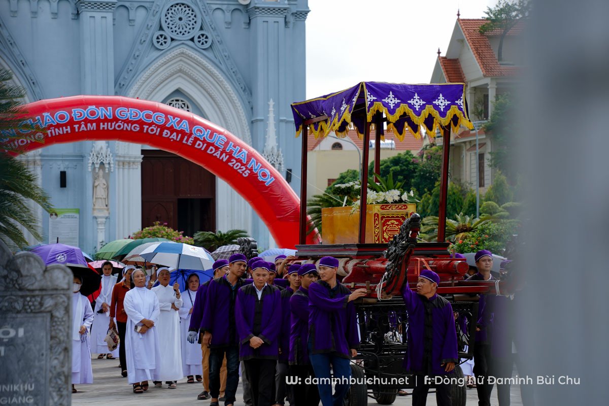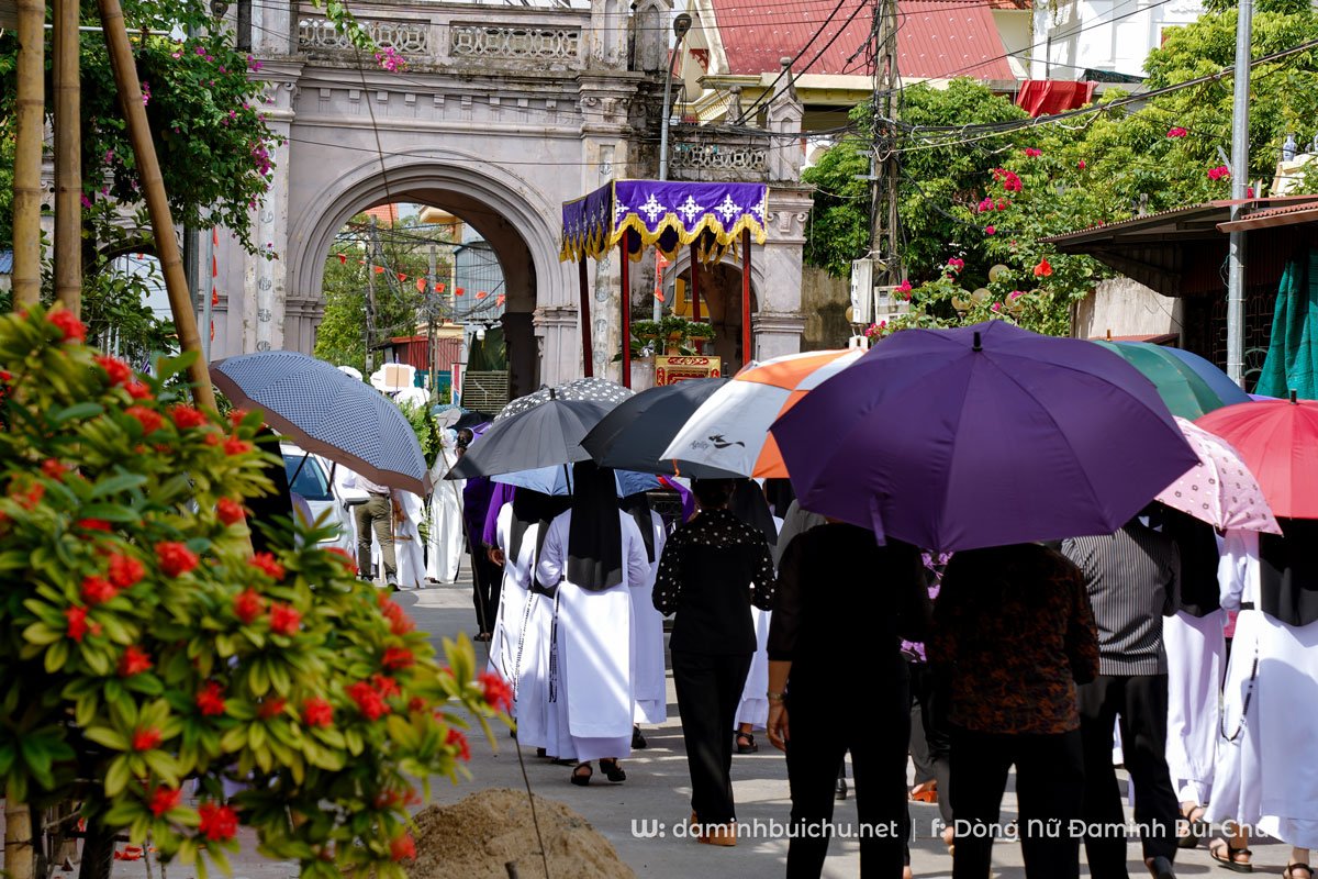 Điều đặc biệt hơn nữa, trong hành trình tiễn đưa Chị Maria về nơi an nghỉ cuối cùng, khi đoàn rước đi ngang qua Nhà thờ Vương cung Thánh đường Phú Nhai, đúng lúc cộng đoàn Gia đình Công giáo xa quê Hà Nội đang tham dự giờ tĩnh tâm hành hương Năm thánh. Cha phó Giuse Nguyễn Văn Hoà đã mời gọi cộng đoàn: “Kính thưa Cộng đoàn, trong khi chúng ta đang ở giữa bầu khí tĩnh tâm, có một nữ tu mới được Chúa gọi về. Khi còn sống, nữ tu ấy đã luôn ước ao được chào từ biệt Đức Mẹ và được cộng đoàn đọc cho mình một Kinh Kính Mừng. Giờ đây, trên hành trình ra nơi an nghỉ cuối cùng, thi hài nữ tu đang dừng lại trước nhà thờ. Xin Cộng đoàn cùng hướng lòng về chị, hiệp lời cầu nguyện và dâng lên Đức Mẹ lời kinh thân thương ấy.” Thật cảm động biết bao, toàn thể cộng đoàn trong nhà thờ cùng hướng về sân cuối, nơi thi hài Chị Maria đang dừng lại hướng về tượng Đức Mẹ. Cả cộng đoàn đã đọc chung Kinh Lạy Cha, Kinh Kính Mừng và cùng hiệp ý cầu nguyện, như thể tiễn Chị bằng lời kinh cuối cùng mà chính Chị hằng khao khát. Khoảnh khắc ấy – âm thầm mà linh thiêng – như một cái nắm tay của Mẹ Maria, dịu dàng dẫn Chị về Quê Trời. Chị đã được chào Mẹ lần cuối, giữa lời kinh của cộng đoàn và trong ơn phúc của Năm thánh đầy tràn ân sủng.