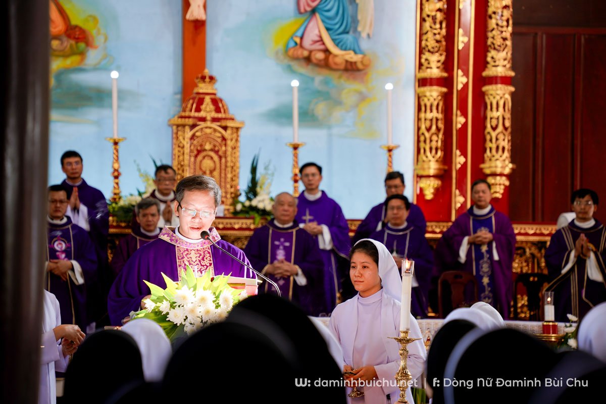 Trong bài giảng, Cha Đa Minh Trần Ngọc Đăng – Giám đốc Đại Chủng viện Mẹ Vô Nhiễm Bùi Chu – đã gợi lên hình ảnh hạt giống với ba vẻ đẹp: âm thầm, hy sinh và vị tha. Từ hình ảnh ấy, Cha mời gọi cộng đoàn chiêm ngắm lại hành trình đời tu của Chị Maria như một hạt giống Tin Mừng được gieo vào lòng Hội dòng và Giáo phận Bùi Chu. Chị Maria là một hạt giống Tin Mừng mang nét đẹp mộc mạc, giản dị, để lại dấu ấn yêu thương và khơi dậy nhiều ơn gọi trẻ nơi giáo xứ Quần Vinh.