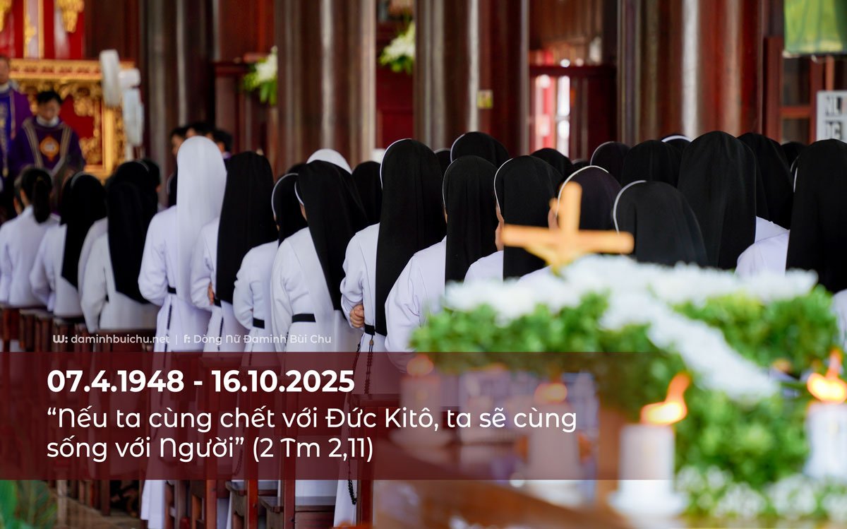 Trong niềm tin vào Chúa Kitô Phục Sinh, Hội dòng Nữ Đa Minh Bùi Chu cùng với gia đình, thân quyến và cộng đoàn dân Chúa đã cử hành Thánh lễ An táng Nữ tu Maria Vũ Thị Lượt vào lúc 08g00 sáng nay, ngày 18 tháng 10 năm 2025 tại Nguyện đường Tu viện Rosa Lima Phú Nhai.