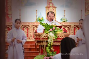 Sáng nay – ngày 23/8/2025, lúc 5g00, tại nguyện đường Tu viện Rosa Lima Phú Nhai, chị em đã cùng nhau quy tụ trong bầu khí sốt sắng và đơn sơ để mừng lễ Thánh Bổn mạng. Thánh lễ do Cha phó xứ Phú Nhai, Giuse Nguyễn Văn Hòa chủ tế; Cha khách Giuse Nguyễn Văn Quyền đã chia sẻ Lời Chúa trong bầu khí tĩnh lặng, thánh thiêng.