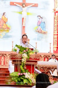 Trong bài giảng, Cha Giuse Nguyễn Văn Quyền đã dẫn cộng đoàn chiêm ngắm ba nét nổi bật nơi Thánh Rosa: sắc đẹp, ý chí và sự thánh thiện. Nếu như vẻ đẹp bên ngoài là món quà tự nhiên Thiên Chúa ban, thì Thánh Rosa đã biết dâng hiến trọn vẹn, không tìm cách làm cho mình nổi bật trước thế gian. Với ý chí kiên cường, thánh nữ được khắc họa không chỉ nơi những nỗ lực phi thường, mà còn trong những hy sinh, nhịn nhục âm thầm của đời sống hằng ngày. Cha đã liên hệ rằng: trong đời tu hôm nay, khi xã hội đầy biến động, con người dễ chạy theo danh lợi, hưởng thụ và tìm cách khẳng định bản thân, thì người tu sĩ lại được mời gọi đi con đường ngược lại – con đường của Thánh Rosa. Đó là biết hy sinh, kiên nhẫn chịu đựng những thiếu thốn, thử thách, thậm chí cả những hiểu lầm nơi cộng đoàn; biết nhịn nhục để gìn giữ sự hiệp thông và làm chứng cho tình yêu Đức Kitô. Chính trong những điều âm thầm ấy, ý chí trở nên vững vàng và sự thánh thiện được vun trồng.