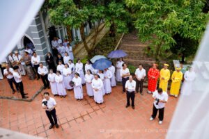 Từ sớm, Tu xá đã rộn ràng chào đón sự hiện diện của quý Cha, quý chị em trong Hội dòng – đặc biệt các cộng đoàn miền Liễu Đề – cùng quý ân nhân, thân nhân và cộng đoàn dân Chúa giáo xứ Đền thánh. Những nụ cười, lời chào và phút gặp gỡ đã làm nên bầu khí thân tình, mở đầu cho ngày lễ thiêng liêng.