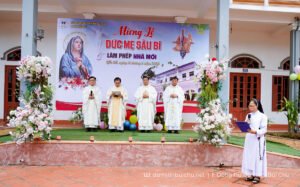 Trong niềm vui tạ ơn Thiên Chúa, sáng ngày 15/9/2025, Tu xá Liễu Đề đã long trọng cử hành Thánh lễ kính Đức Mẹ sầu bi – Quan thầy của cộng đoàn. Dịp lễ năm nay thêm phần đặc biệt khi cộng đoàn dâng lên Thiên Chúa tầng nhà mới qua nghi thức làm phép trang trọng. Niềm vui của hôm nay không chỉ vì có thêm một công trình mới, mà còn vì chị em được cảm nếm sâu hơn tình thương quan phòng và sự nâng đỡ từ Thiên Chúa cùng bao tấm lòng quảng đại.