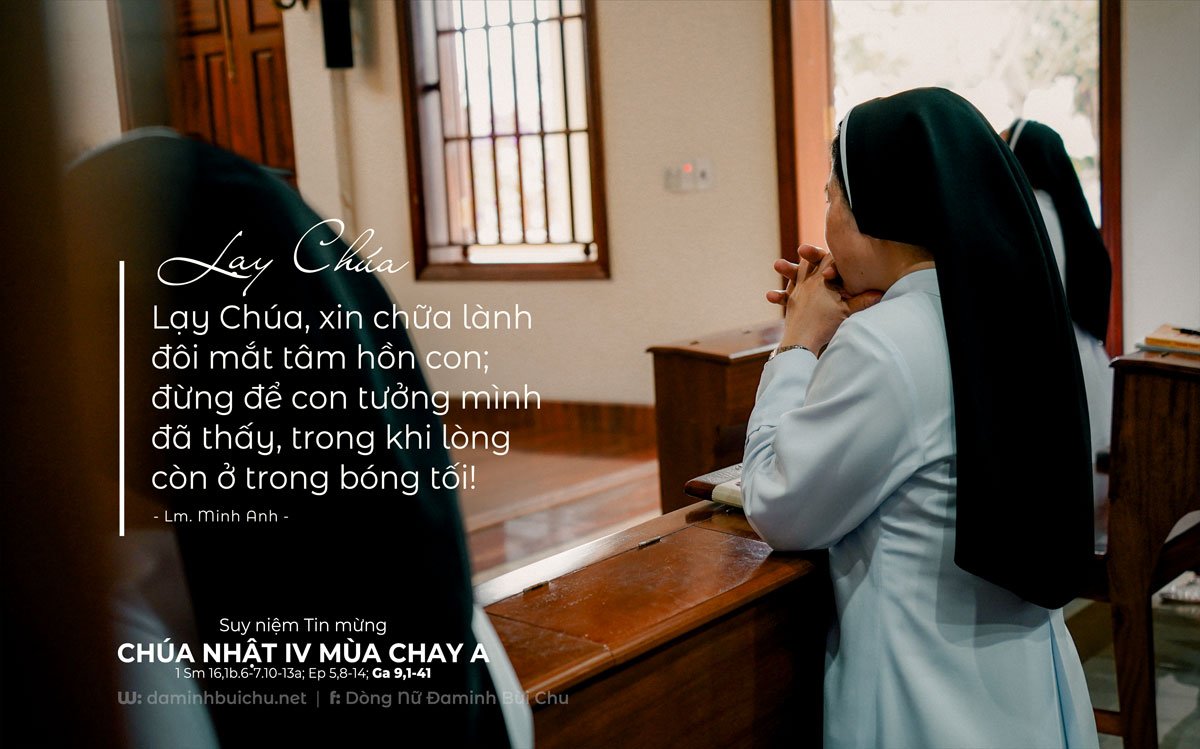 Đang khi những người tưởng mình hiểu mọi sự lại đi theo hướng ngược lại. Họ không phủ nhận phép lạ, nhưng không muốn thấy điều phép lạ nói lên; vì ánh sáng Giêsu không chỉ mở mắt, mà còn phơi bày trái tim. Bởi thế, thay vì vui mừng với người được sáng mắt, họ lại cố chấp bảo vệ quan điểm – bi kịch của những kẻ ‘tưởng mình thấy’. “Người phàm chỉ thấy điều mắt thấy, còn Đức Chúa thì thấy tận đáy lòng” – bài đọc một. Vì vậy, ánh sáng của Thiên Chúa không dừng ở đôi mắt, nhưng chiếu vào tâm hồn; và khi ánh sáng ấy chạm đến, con người được mời gọi “hãy ăn ở như con cái ánh sáng” – bài đọc hai.