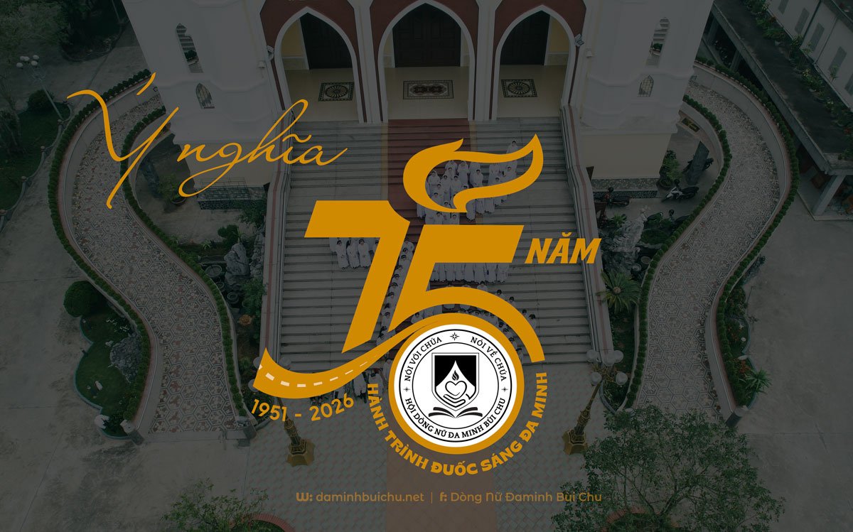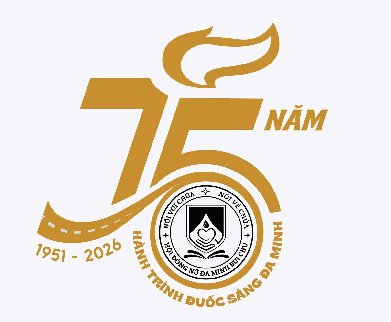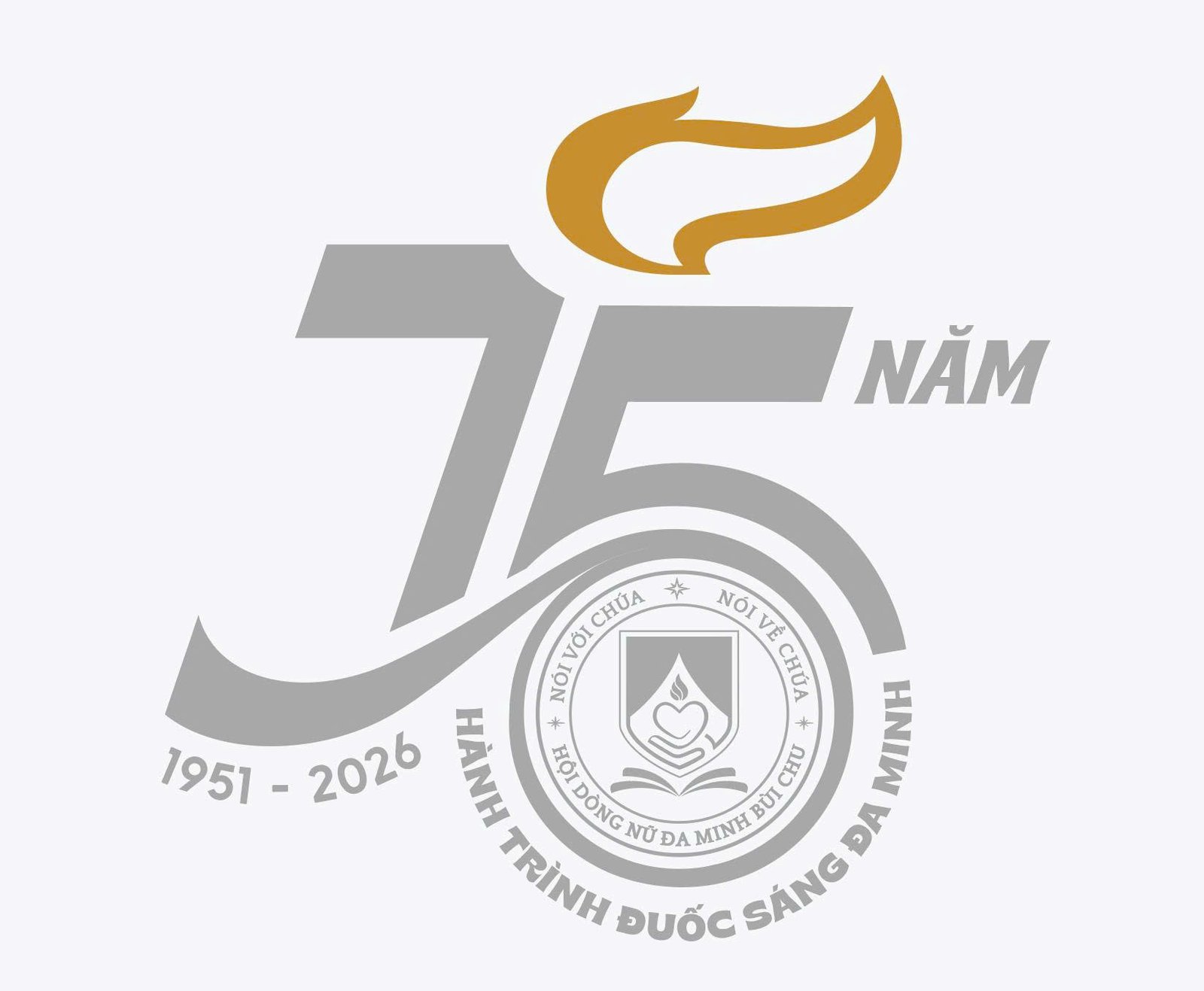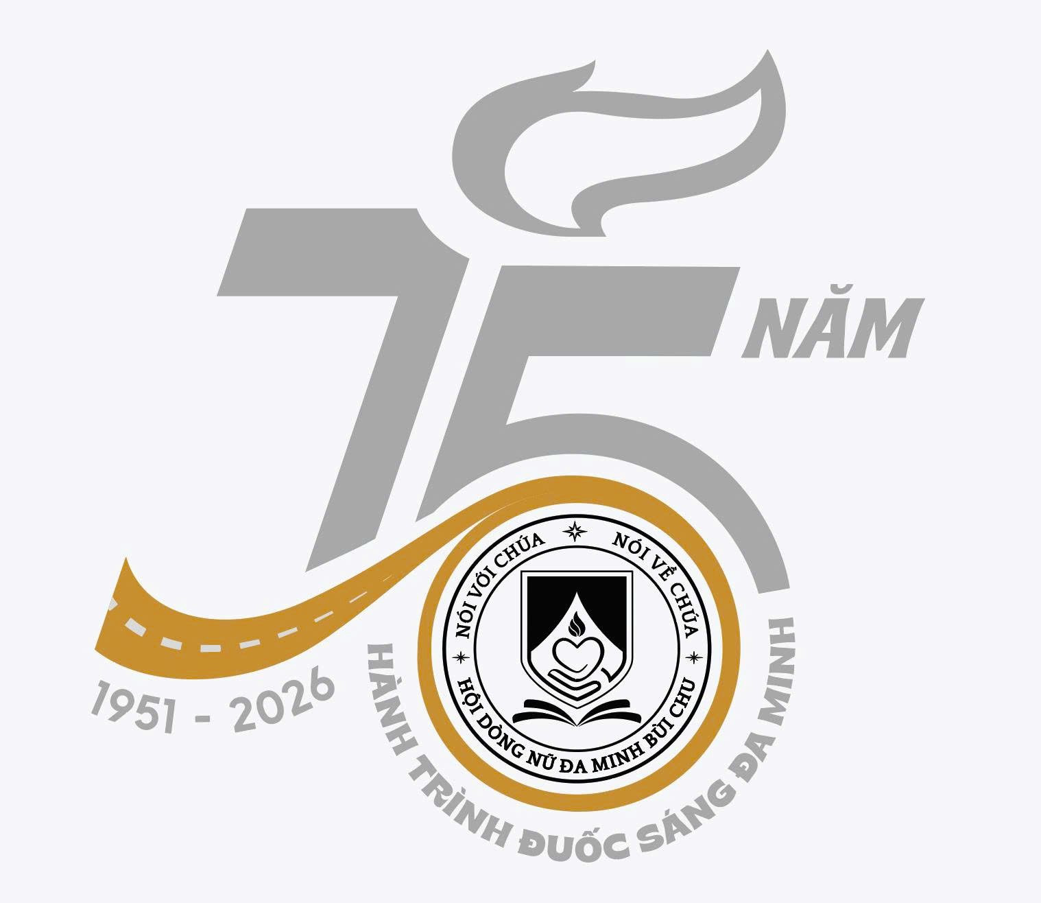 Số 75 được cách điệu thành thân đuốc, vừa mang ý nghĩa 75 năm hình thành và phát triển của Hội dòng (1951–2026), vừa cho thấy lịch sử ấy không tách rời sứ mạng, nhưng chính là nền móng nâng đỡ ánh sáng hôm nay.